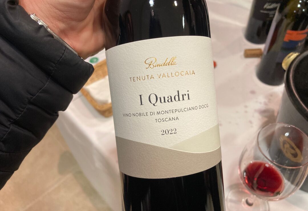 Moderna azienda della famiglia Bindella, Tenuta Vallocaia inizia la sua avventura con Rudi Bindella nel 1983, data di acquisto del suo primo vigneto con annesso rudere nella Pieve di Sant’Ilario. Anno dopo anno la cantina si inserisce in un contesto sempre più innovativo delineato da un’architettura del paesaggio di grande impatto naturalistico. Risale al 2000 la prima annata de I Quadri, Vino Nobile da singolo vigneto esclusivamente sangiovese. Da suoli argillosi con presenza di limo l’annata 2022 presenta un profilo gusto olfattivo molto complesso dal naso al palato, scandito da frutta matura a bacca nera e rossa, cenni balsamici, spezie, note di sottobosco. Trama tannica importante ben integrata con le parti acide. Sorso lungo e persistente che lo rende un vino gastronomicamente eclettico.